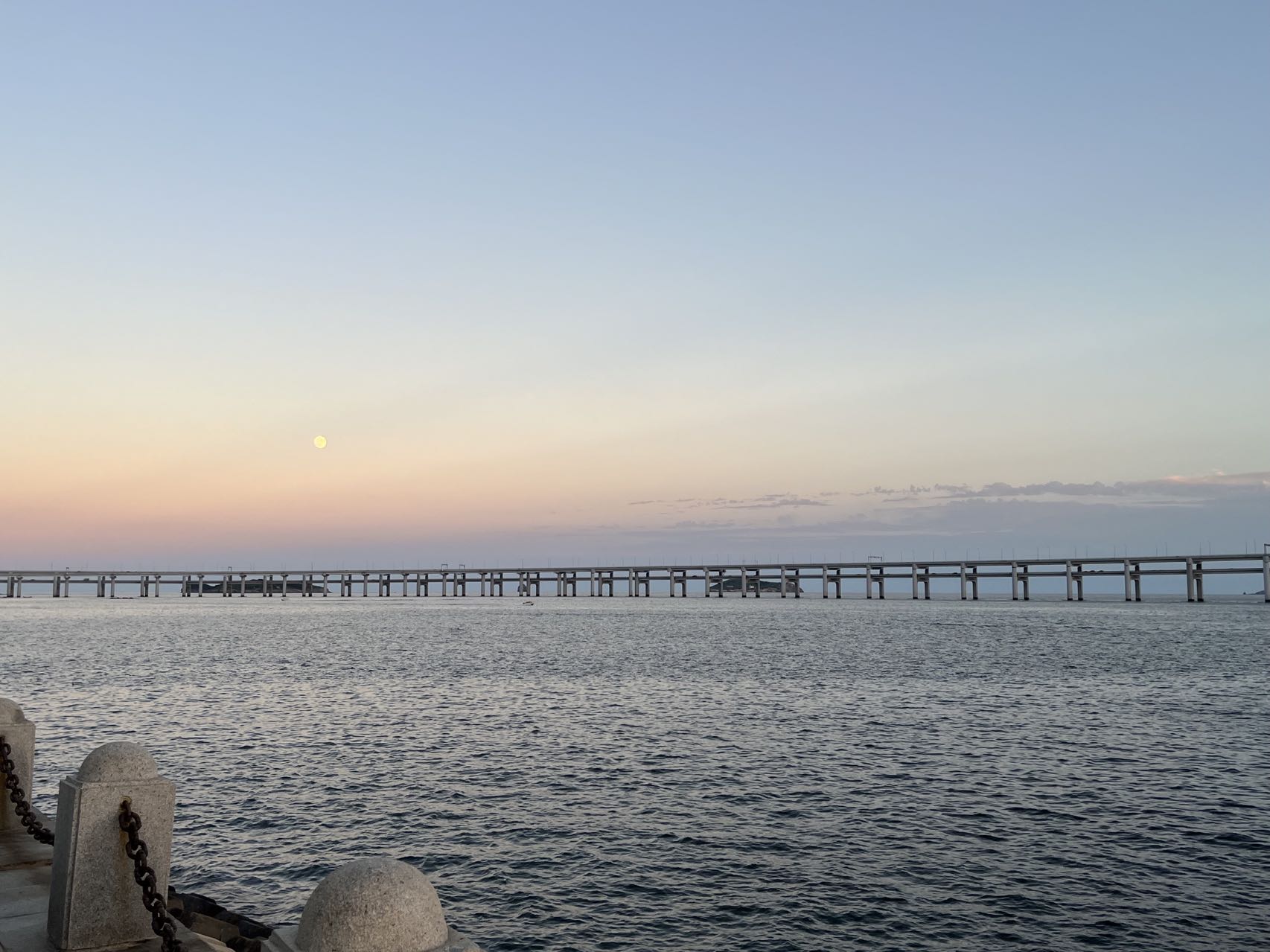 我们住在离星海广场只用步行两分钟的地方,第一天落地就去吹了几个小时的海风。那天晚上我们沿着那片海域散步,一路上遇到了无数人钓鱼、弹吉他、唱歌、喝茶喝酒,好多本地人直接从小面包车后备箱上搬出音效设备和烧烤器材,一边烤串喝酒,一边弹吉他唱歌(走的时候听到了《California Hotel》…好喜欢)。我和我妹还专门坐在长椅上休息十来分钟,就是为了听后面一个说话特别搞笑的老哥讲他的爱情故事。其实我录了一些路人的视频,但感觉不太好放在网上,只能简单用文字描述下😢。