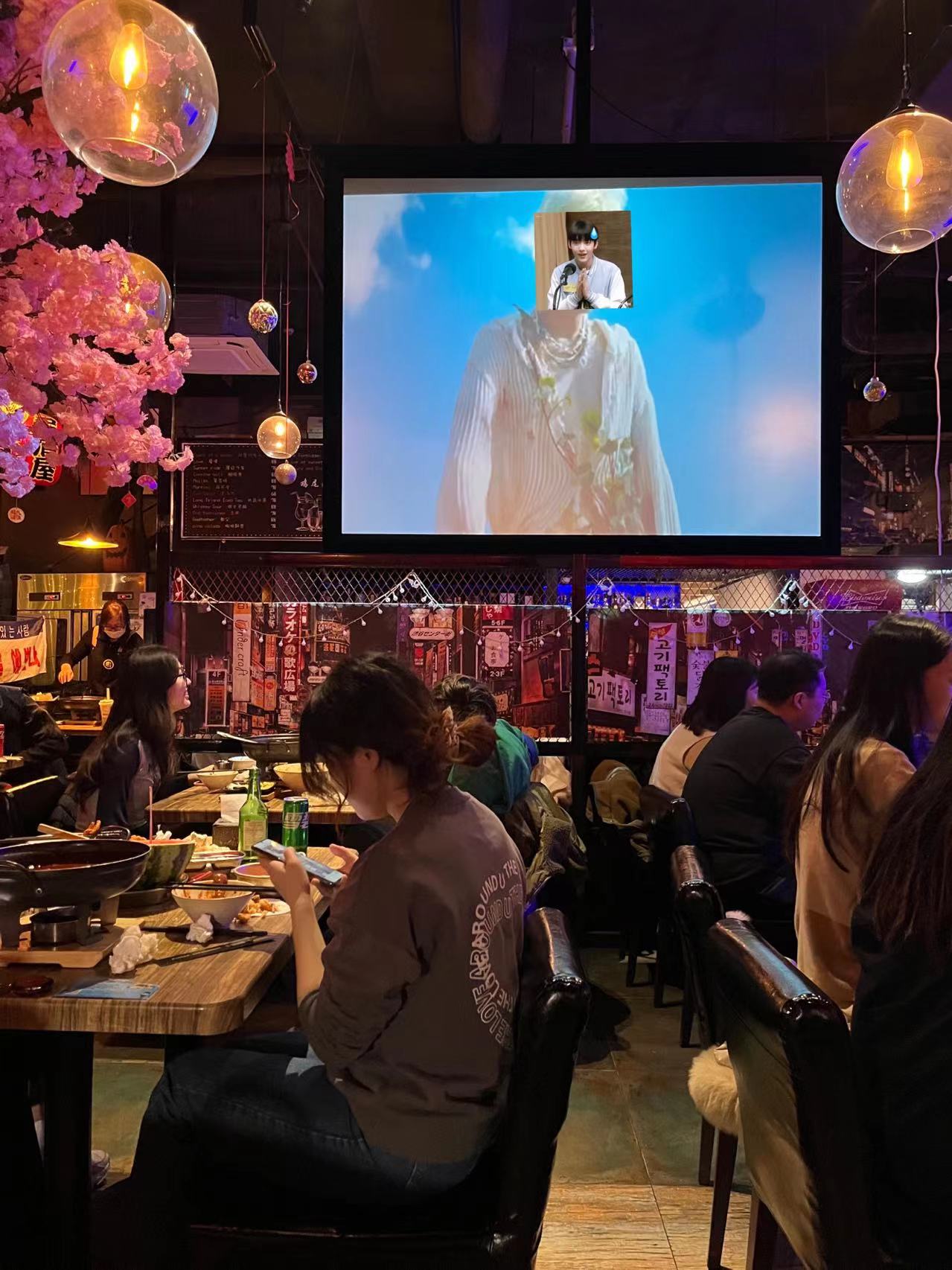 在韩料店吃饭,店里有块大屏,一直在放mv。放了很多itzy之后突然来了个txt,我跟室友大叫的时候发现隔壁桌也在发疯,还掏出小卡拍照啊啊啊啊啊!!就是忘记看小卡是谁了…完全感受到了线下的快乐