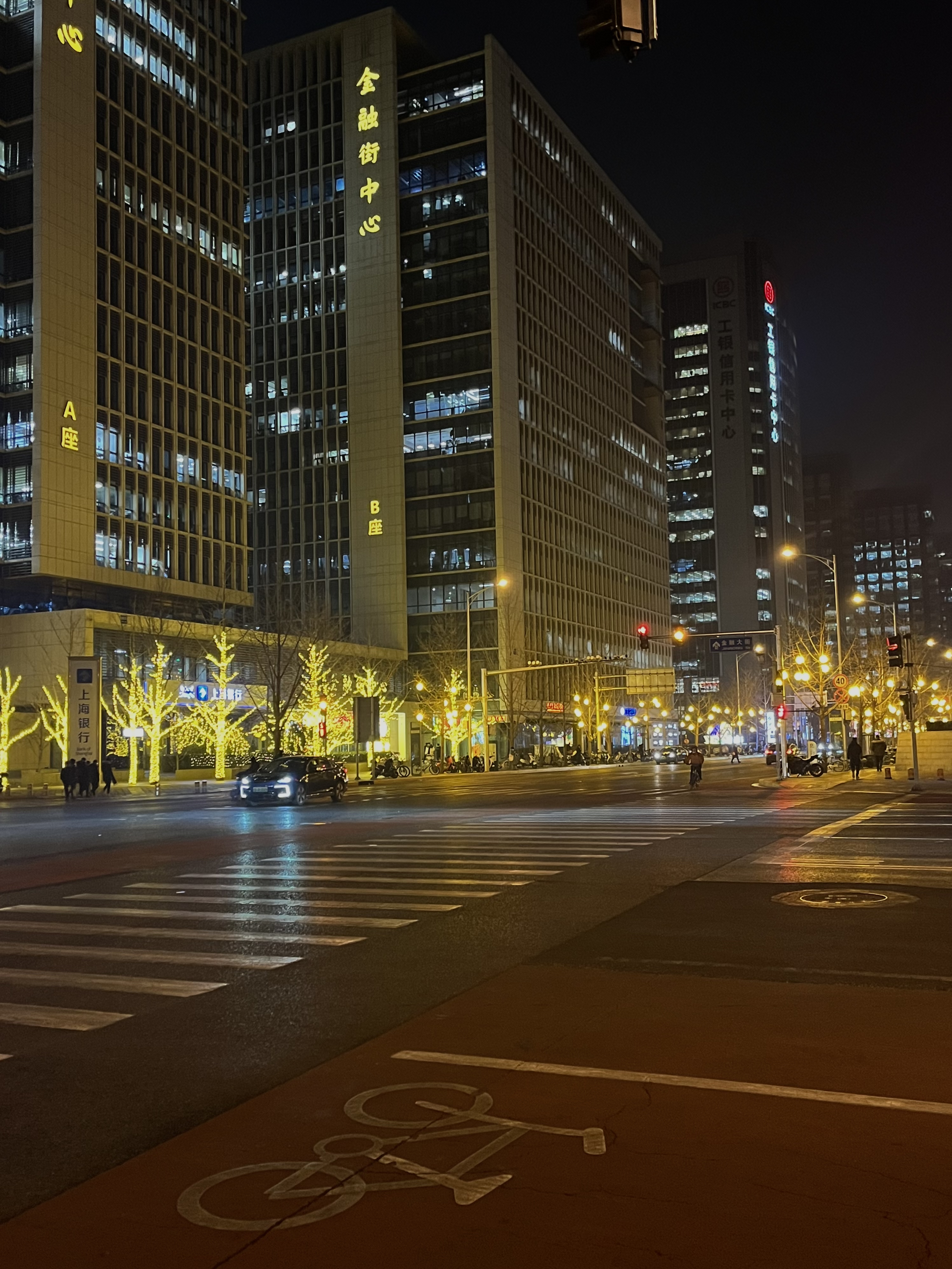那天我八点半才下班。我之前并未见过晚上的金融街,但一走出写字楼看见金融街两边的树上挂着圣诞风格的灯球(be like《匹诺曹》第八集男女主接吻的那条街),与此同时两边的写字楼也灯火通明,加之我没吃晚饭觉得饿,被风一吹又觉得冷,那一瞬间我突然觉得在北京好寂寞好没意思。或许是金融街这个破地方有问题,密密麻麻全是金融机构的写字楼,先不说有没有烟火气,连活人感都没多少,我每次去都觉得这玻璃林立的地方好令人痛苦。