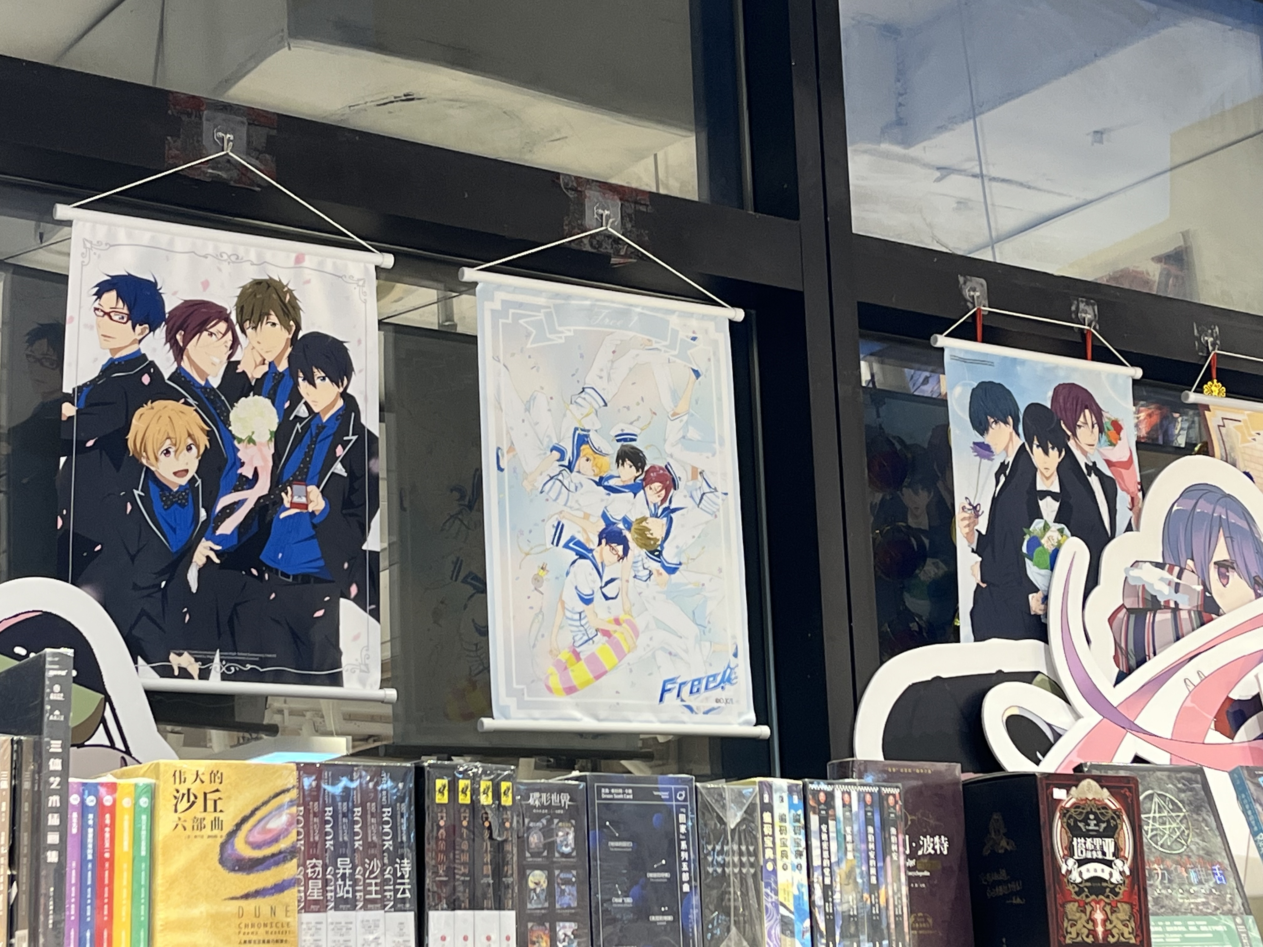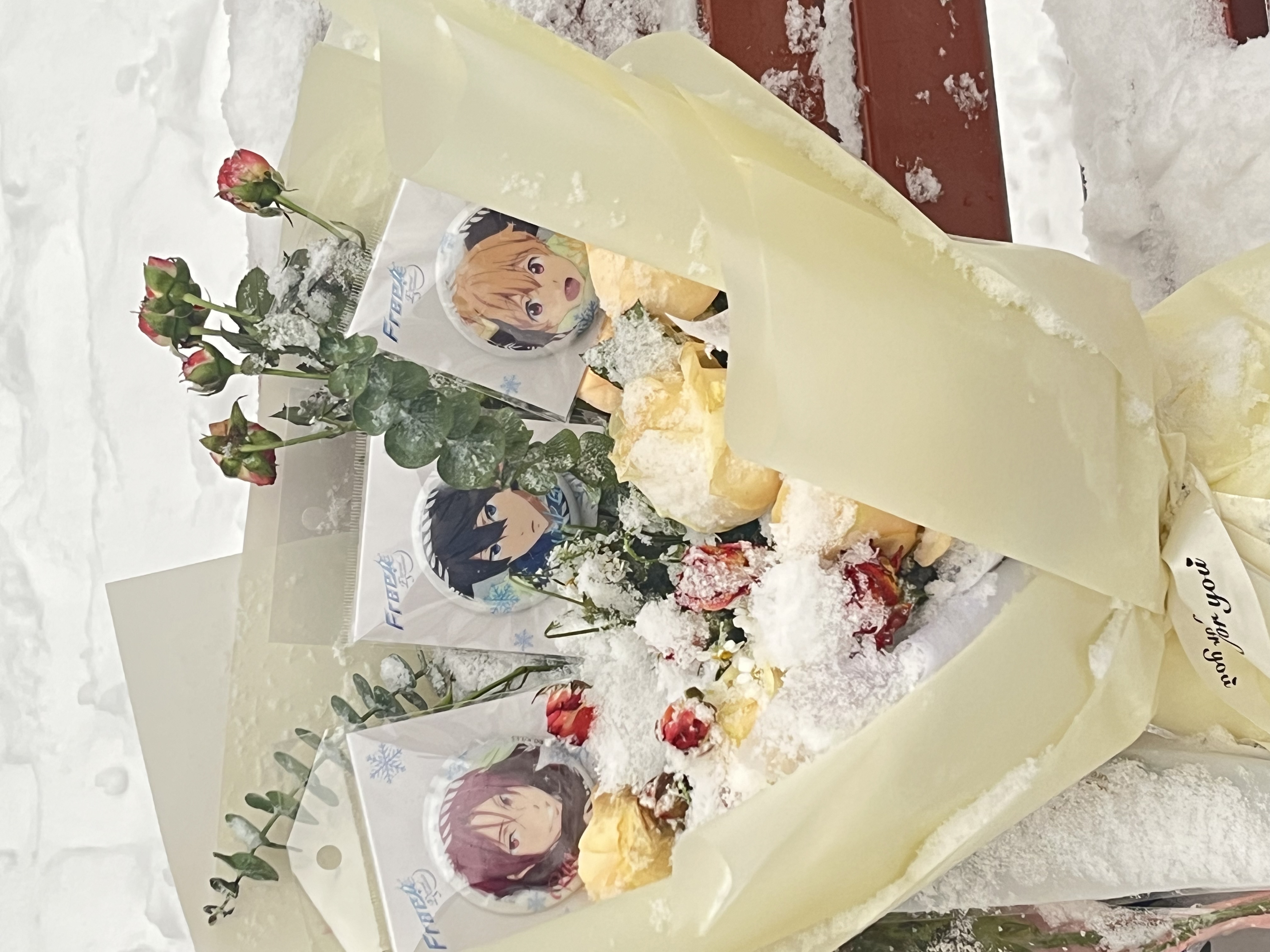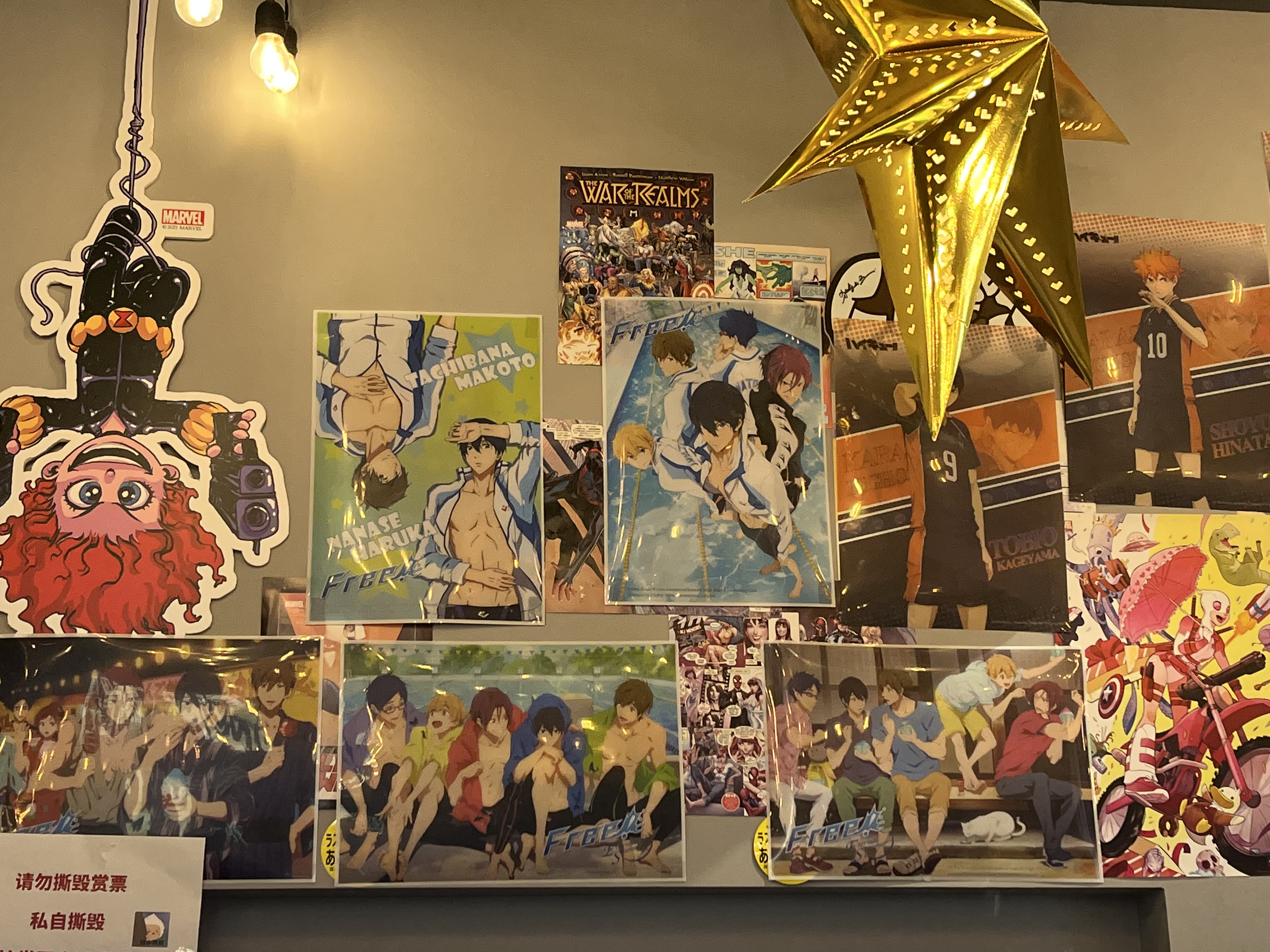 《free!》的谷子很多,而且绝大多数选图都很美。因此我在B站买了五个吧唧后,又借着本科室友也入坑《free!》的契机,和她一起在大雪天出门冲到谷店,购入明信片两张、透卡一张、亚克力立牌一个。第一次体会到吃谷的快乐,完全是看宝宝的心情,无论拍什么照片都想把它也放进照像框内。亚克力真的太美了我要多买亚克力。