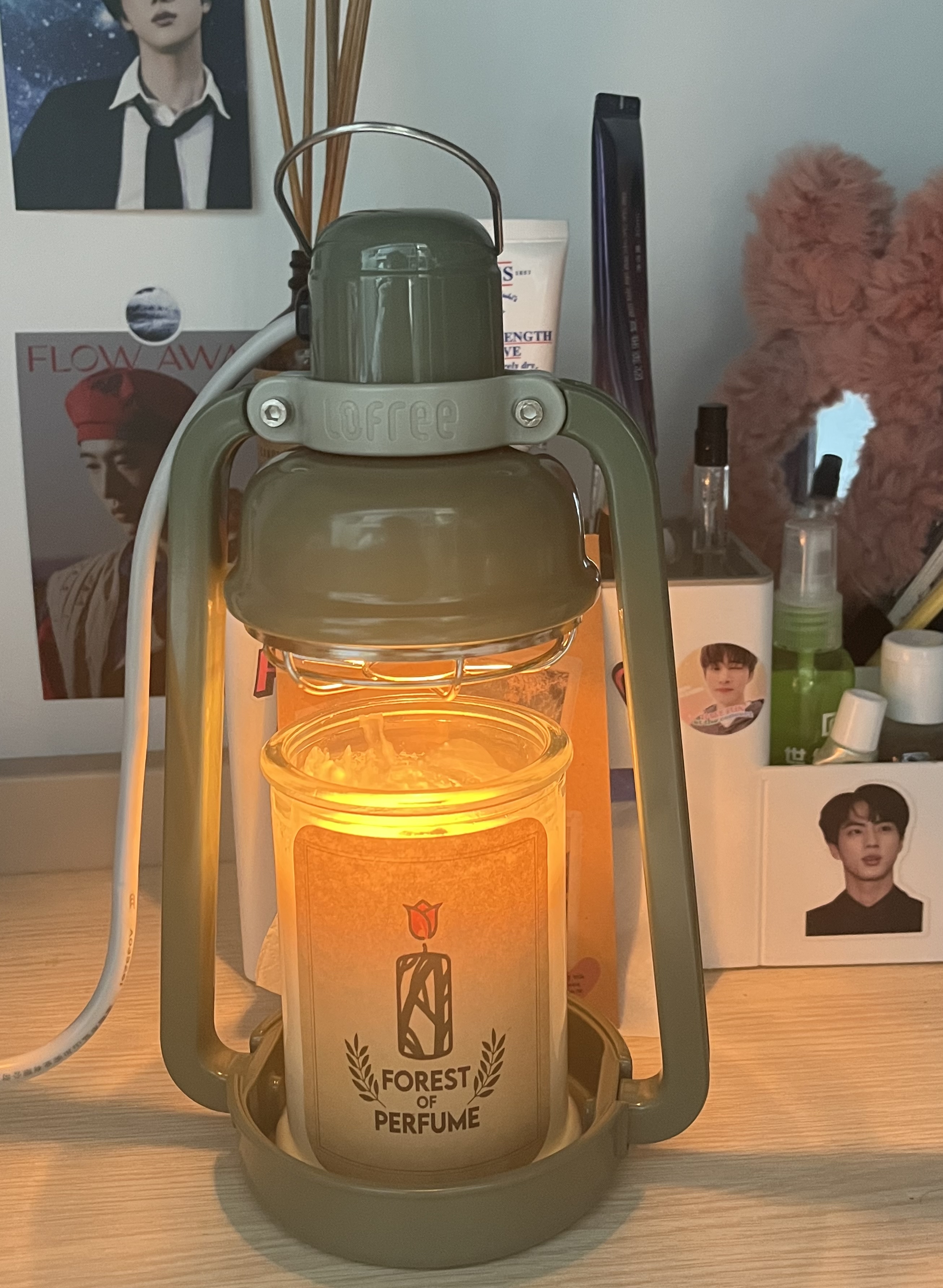 最后解决这一问题的方法是,我用香薰代替了香水,一是因为香薰体积很大,天天在我的视线范围内,二是因为无火香薰完全不用我做什么额外操作,选一个地方摆着,然后插上香条就好了,三是香薰比香水便宜太多,想买新的也完全不用像买香水一样纠结来纠结去,四是我的朋友们对我的香薰大业提供了重要支持!呆呆给我推荐的Pf琥珀与苔藓简直太好闻,在家的时候我先买了蜡烛版,后面因为太喜欢味道,又在宿舍购入无火版。张女士继19年给我买香水之后,今年!送了我融蜡灯!每次把香薰放在融蜡灯里点的时候,我都觉得这种氛围应该贯穿我的24小时才行。而且融蜡灯还可以烤面包!