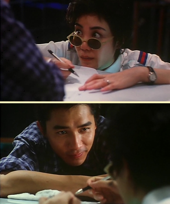 王菲和梁朝伟的每一个片段我都喜欢,很灵,王菲像鱼一样。尤其爱最后一幕,王菲穿着空姐制服,拉着行李回到熟悉的小吃店,却惊讶地发现梁朝伟成了老板。然后她趴在玻璃柜上写字,眼睛在眼镜上方睁得大大的,梁朝伟也趴在玻璃柜上,望向她。没有人能拒绝这样的王菲和这样的梁朝伟!